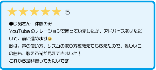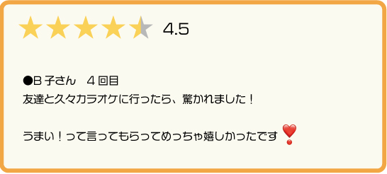 | カラオケ講座3ヶ月集中コース | 1回55分 月2回 3ヶ月合計:6回 |